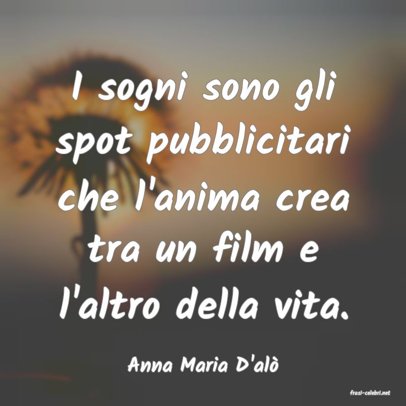 I sogni sono gli spot pubblicitari che l'anima crea tra un film e l'altro della vita. Anna Maria D'al?