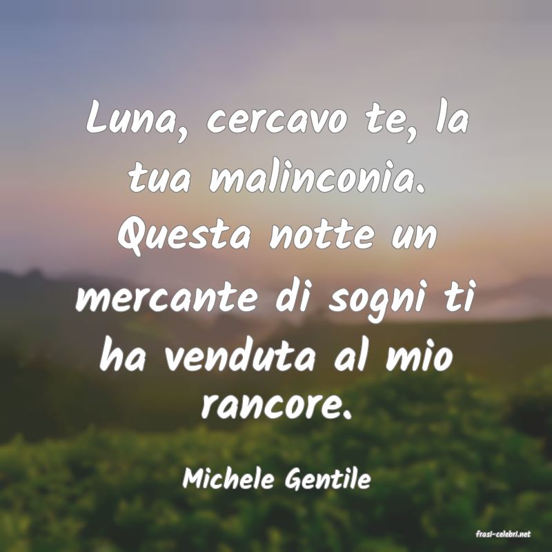 Luna, cercavo te, la tua malinconia. Questa notte un mercante di sogni ti ha venduta al mio rancore.