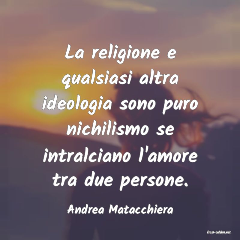 La religione e qualsiasi altra ideologia sono puro nichilismo se intralciano l'amore tra due persone.